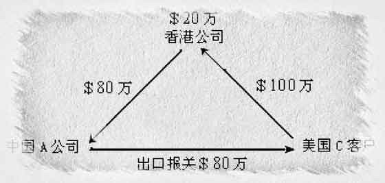 2、物流:很簡單,如果中國A公司有自營進出口權,則可由A公司直接出口報關(如果沒有,則您可以指定代理公司為其出口報關,當然也可以讓工廠自己去找代理),報關金額當然為80萬,并且是賣給香港公司,但貨物目的港為美國,也就是由中國大陸直接將貨物發到美國客戶那邊,絕對不需要經過香港轉港的。